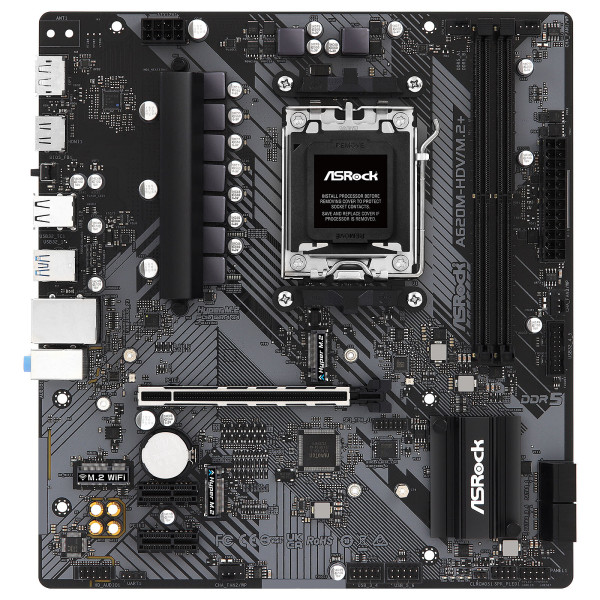 Dotée d'un socket AMD AM5 pour les processeurs AMD Ryzen 7000, de 2 slots mémoire DDR5 jusqu'à 7200 MHz en mode OC, d'un système d'alimentation 6 + 1 + 1 Power Phase, de la prise en charge des cartes M.2 PCIe 4.0, d'un port PCI-Express 4.0 16x, du chipset audio ALC897 7.1 HD Nahimic Audio, ainsi que du réseau LAN 1 GbE associé à un emplacement M2 2230 pour module Wi-Fi/Bluetooth, la ASRock A620M-HDV/M.2+ offre des performances fiables et une connectivité étendue.