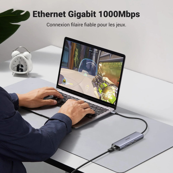 Hub UGREEN USB-C 7-en-1 avec charge rapide PD 100W – HDMI 4K, USB 3.0, Ethernet Gigabit et lecteur de carte