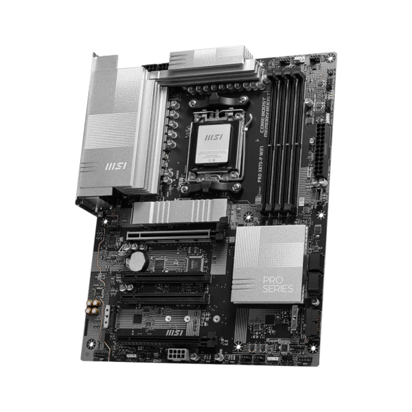 La carte mère MSI PRO X870-P WIFI est animée autour du chipset AMD X870 qui permet de prendre en charge les processeur AMD Ryzen sur socket AM5, plus précisément les séries 7000/8000/9000. Issue de la gamme MSI PRO, la X870-P WIFI sera le cœur de votre PC gamer ou de votre station de travail grâce à la prise en charge des cartes graphiques et des SSD M.2 NVMe à la norme PCI-Express 5.0 pour des performances accrues.